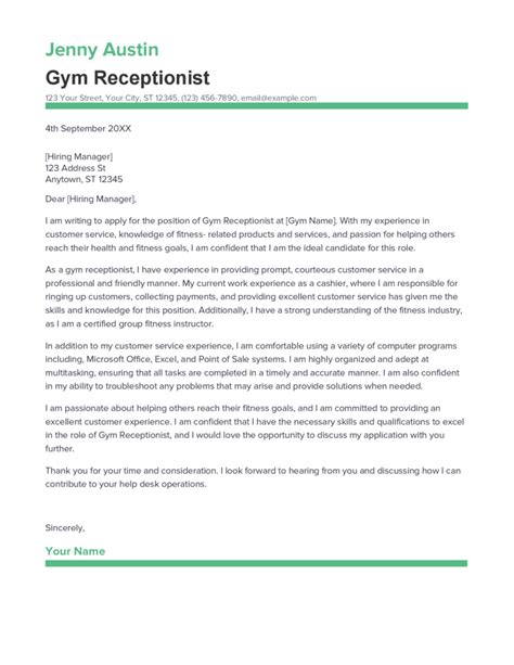 Build off of this excellent sample to craft a memorable story in. Gym receptionist cover letter example. Use these gym receptionist cover letter examples and writing tips to help you write a powerful cover letter that will separate you.
